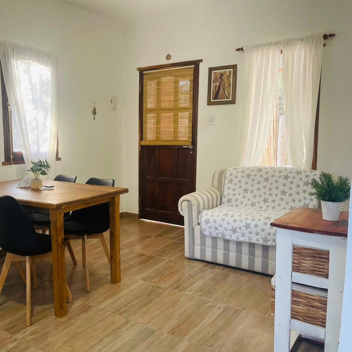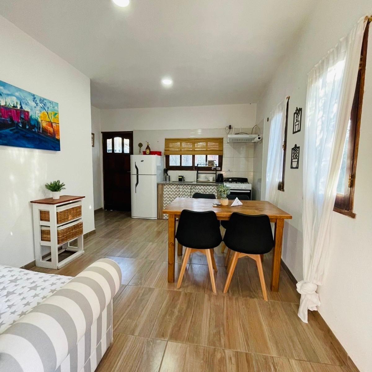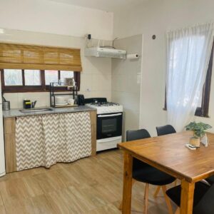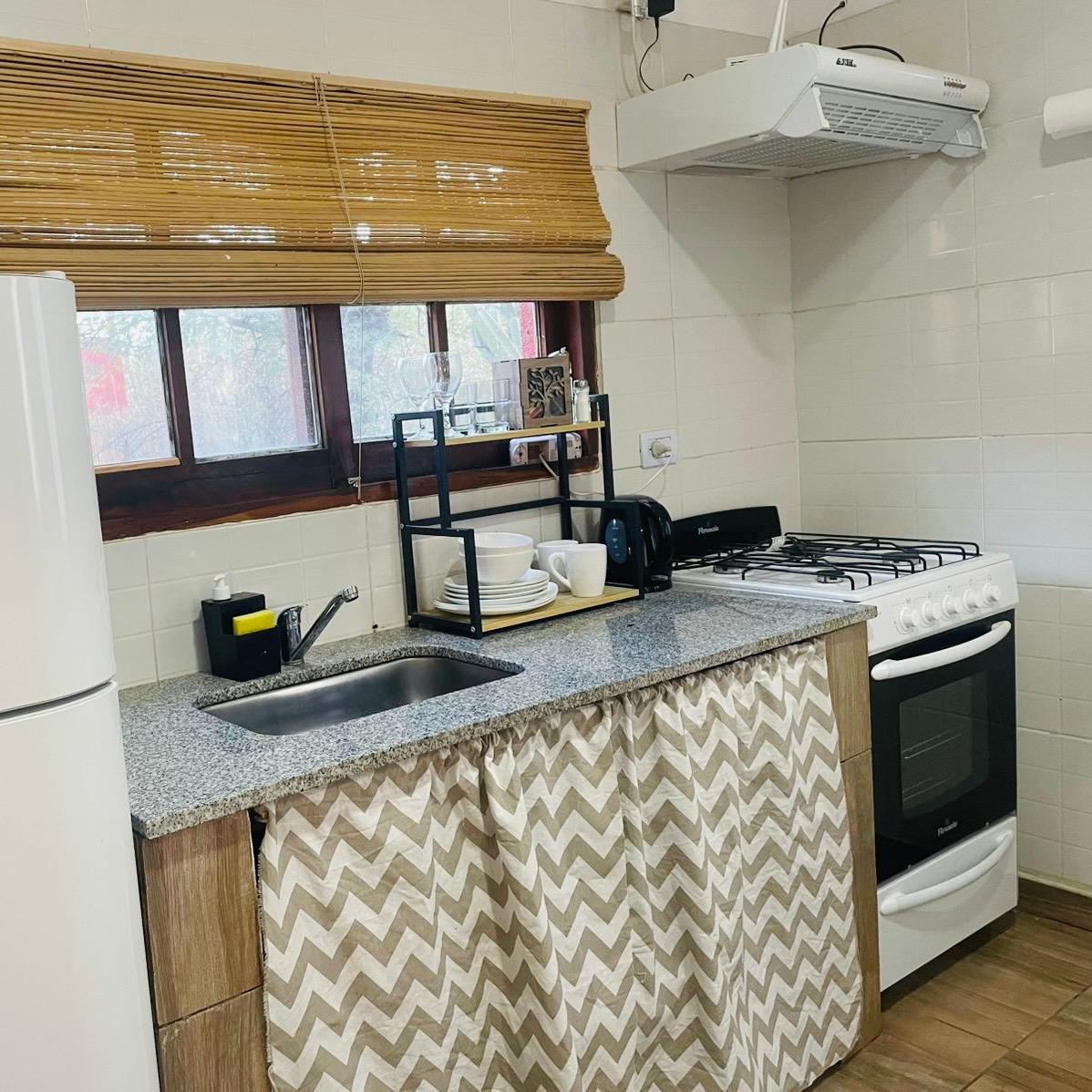 . Cocina con vajilla, heladera con freezer, cocina con horno