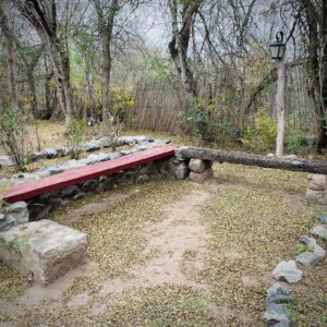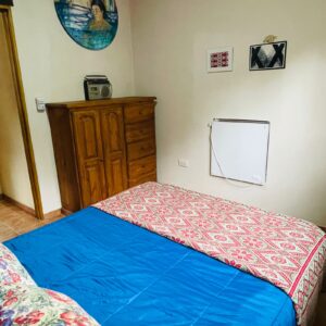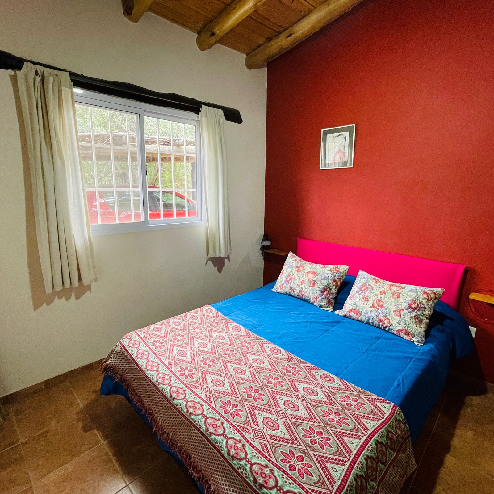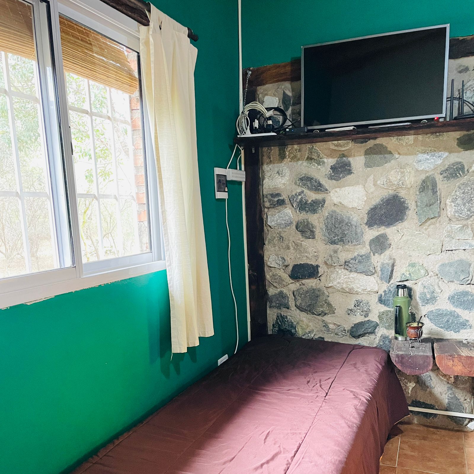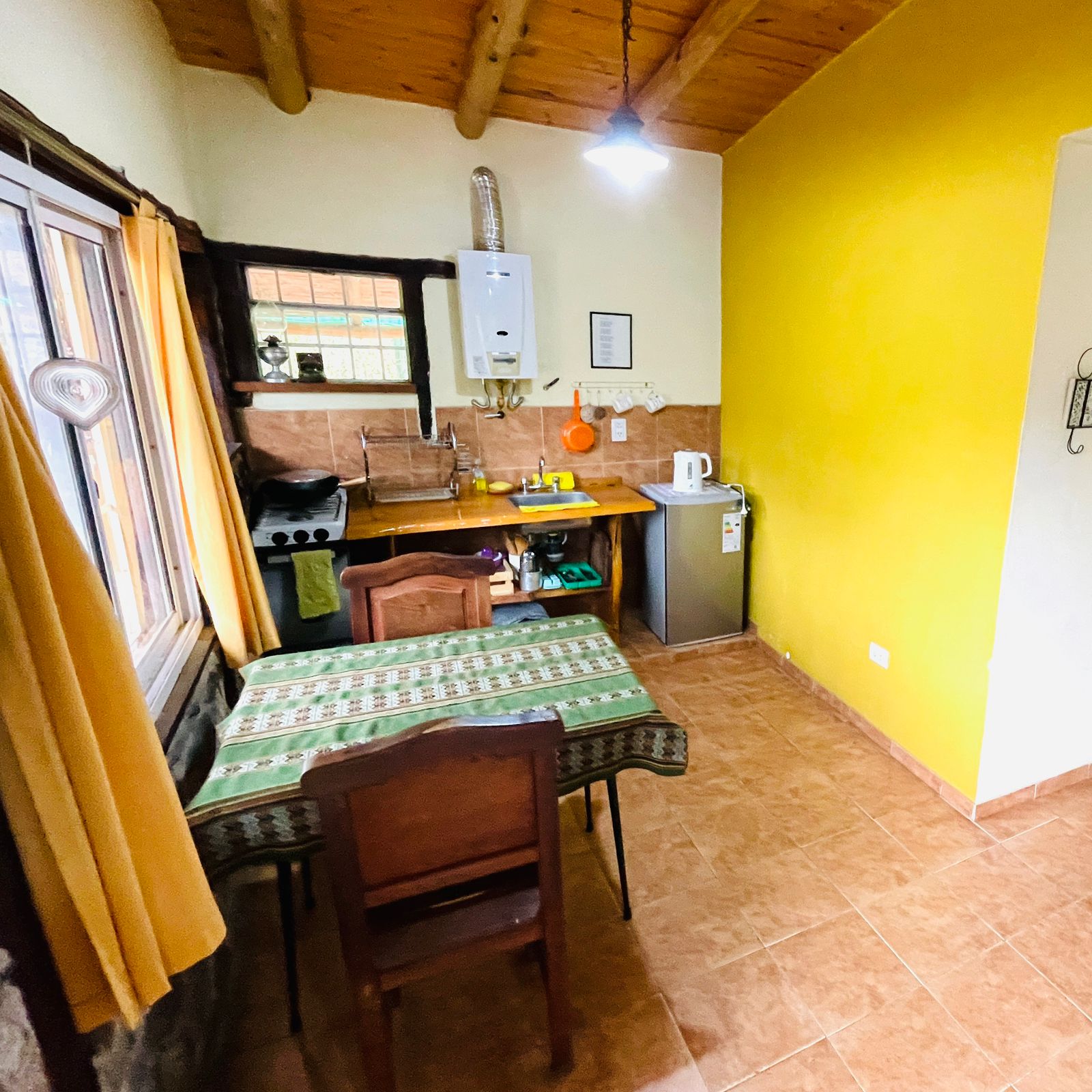 . A 10 cuadras de la plaza y el río en un entorno de mucha paz, rodeada de monte nativo. . . Casa con una habitación con cama doble, otro ambiente con dos camas individuales, baño, cocina completa, galería techada con parrilla y estacionamiento techado para auto/camioneta.