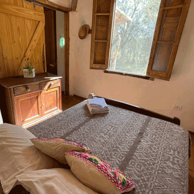 . Habitación con cama mat y tiro balanceado. Cama diván en el living.