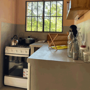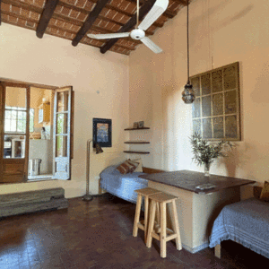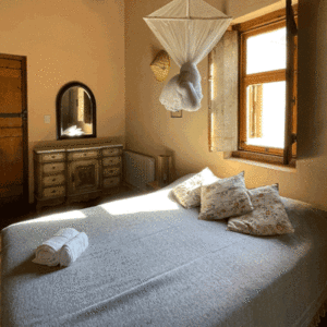 . Casa con una habitación con cama doble, otro ambiente con dos camas individuales.
